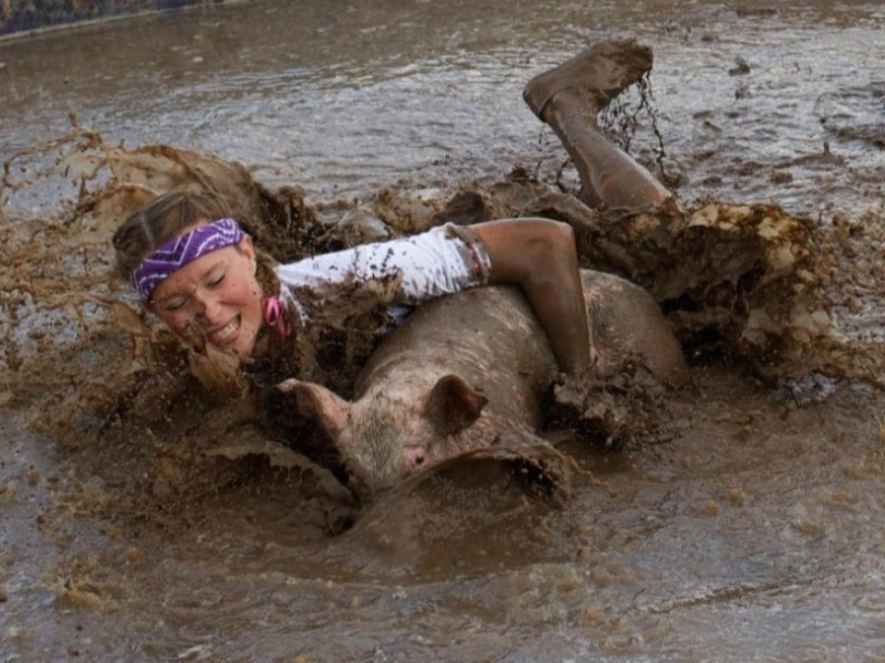 Jedes Jahr im August verwandelt sich das Festival du Cochon in Quebec, Kanada, in ein wahres Spektakel voller Tradition, Musik und skurriler Wettkämpfe. Der Höhepunkt des Festivals ist zweifellos der legendäre Schweinekampf im Schlamm, bei dem Tausende Zuschauer zusammenströmen, um zuzusehen. Die Teilnehmer stürzen sich in eine schlammige Arena und ringen darum, glitschige, schnelle Schweine zu fangen und festzuhalten. Was wie reines Chaos aussieht, erfordert tatsächlich Geschick, Schnelligkeit und eine gute Portion Mut. Die Szenerie ist atemberaubend – zwischen lachenden Gesichtern, spritzendem Schlamm und den unberechenbaren Bewegungen der Schweine entsteht eine Atmosphäre, die einzigartig ist. Der Schweinekampf ist mehr als nur ein Wettbewerb – er ist ein Fest der Gemeinschaft, das Generationen verbindet und unvergessliche Erinnerungen schafft.