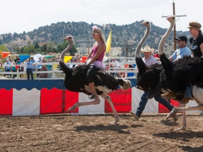 Straußenrennen: Rasante Fahrten auf gigantischen Vögeln