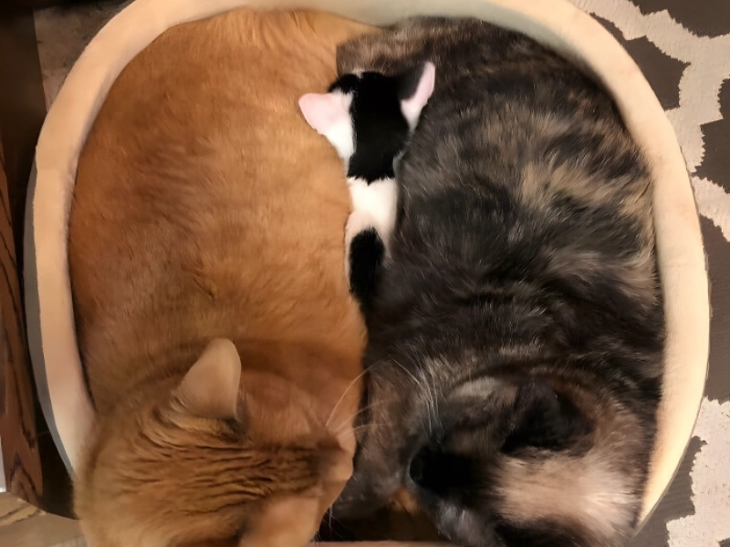 Tierhalter auf der ganzen Welt sind immer wieder von einer universellen Wahrheit über das Tierverhalten fasziniert, die sich in den interessanten Dynamiken von Schlafgewohnheiten zeigt. Unsere tierischen Gefährten neigen stets dazu, Schlafplätze zu teilen, selbst wenn wir in mehrere opulente Tierbetten, Decken und Kissen investieren. Das führt zu wunderbaren Bildern von tierartenübergreifenden Kuschelhaufen. Diese spezielle Situation beleuchtet ein typisches Phänomen in Mehrkatzenhaushalten, wo die Ankunft eines neuen Familienmitglieds eine wunderbar chaotische Störung der etablierten Hierarchie und Schlafarrangements bewirkt. Die beiden älteren Katzen hatten ihr Schlafarrangement in ihrem ausgewählten Bett bereits perfektioniert und einen für sie bequemen Rhythmus etabliert. Doch die Ankunft ihres neuen Bruders brachte eine unerwartete, aber schöne Entwicklung mit sich. Getrieben vom Instinkt nach Wärme und Schutz zeigte das kleine Kätzchen erstaunlichen Willen, sich buchstäblich mitten in die Familie zu platzieren. Indem es sich zwischen seine größeren Geschwister zwängte, sicherte sich das Kätzchen nicht nur den wärmsten und sichersten Platz, sondern festigte auch seine Position in der sozialen Hierarchie der Familie. Dieses Verhalten zeigt das angeborene Bedürfnis nach Körperkontakt und Sicherheit, das Katzen von klein auf haben, und beweist, dass manchmal die besten Dinge im Leben in kleinen Paketen kommen.