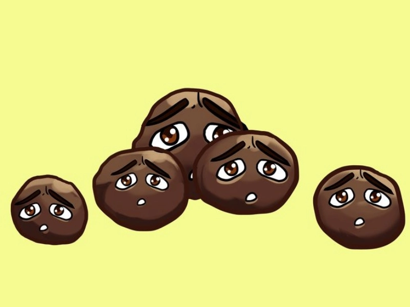 Aussehen: Einzelne, harte Klümpchen, die Nüssen oder Ziegenkot ähneln.