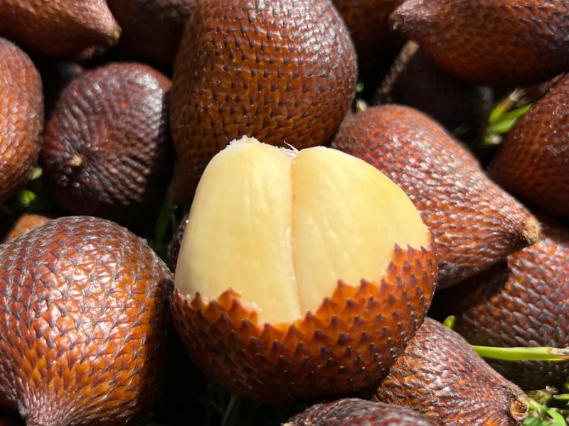 Der Verzehr der Schlangenfrucht ist ein sehr ungewöhnliches Sinneserlebnis, das Erstkonsumenten häufig überrascht. Viele Menschen vergleichen den komplexen Geschmackseindruck des Fruchtfleisches – eine Mischung aus süßen, sauren und adstringierenden Noten – mit einer Kombination aus Apfel und Ananas mit Untertönen von Banane. Die Textur ist ebenso einzigartig und besitzt, obwohl sie dichter und kompakter ist, eine knusprige, knackige Qualität wie ein Apfel. Vollreifes Fruchtfleisch löst sich leicht von den großen Samen im Inneren und behält auch bei voller Reife seine feste Konsistenz. Vom rohen Verzehr bis zur Verwendung in Konfitüren und Desserts macht die ungewöhnliche Kombination aus Aromen und Texturen die Frucht besonders vielseitig in der kulinarischen Anwendung.