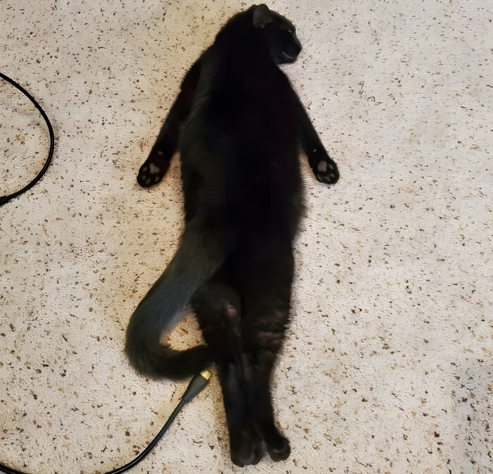 Der Besitzer dieser Katze erzählte, dass seine Katze die ungewöhnlichste Schlafposition habe und lud dieses Bild ins Internet hoch. Aber wenn die Katze den ganzen Tag über abgestöpselt war, was konnte man dann erwarten? Die erwartete Ladung ihrer Katze, als der Stecker gezogen wurde, ist unbekannt, und das ist wahrscheinlich der Grund, warum ihre Schlafposition im Haus die seltsamste ist. Diese hier ist keine Ausnahme von der Regel; Katzen sind für ihre exzentrischen Verhaltensweisen und originellen Komfortmethoden berühmt. Trotzdem können wir sehen, wo es hingehört, also keine Panik. Dieser Umstand ist zweifellos lustig, da die Katze von ihrer seltsamen Haltung völlig unbeeindruckt zu sein scheint. Okay, das Bild bringt uns definitiv zum Kichern, auch wenn wir nicht wirklich glauben, dass diese Katze angeschlossen werden sollte. Es erinnert uns daran, wie Haustiere selbst in ihren ungewöhnlichsten Situationen Unterhaltung und Freude in unser Leben bringen können. Das Kabel in der Szene macht dieses Bild noch viel lustiger und niedlicher und unterstreicht die Originalität und den Reiz, den Haustiere für unseren Alltag bieten.