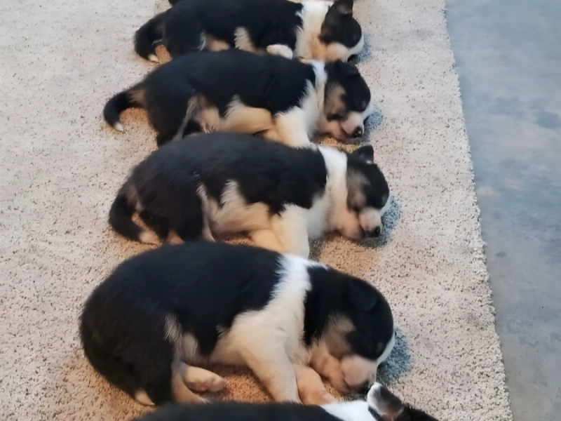 Welpen können gelegentlich genauso anspruchsvoll sein wie durchschnittliche Babys. Sie verlangen viel Aufmerksamkeit, brauchen ständig etwas und strahlen turbulente Energie aus. Jeder, der schon mehrere Welpen im Haus hatte, wird daher zu schätzen wissen, wie wunderbar es ist, wenn sie alle gleichzeitig schlafen können – genau wie Säuglinge! Jeder Haustierbesitzer wäre gesegnet mit der puren Ruhe, die aus koordiniertem Schlaf resultiert. Wir nehmen also an, dass diese Hundemama die Stille genoss, die dieses synchronisierte Nickerchen während der Welpenschlafenszeit begleitete. Dies ist ein seltener ruhiger Moment inmitten des typischen Welpenchaos. Obwohl jeder dieser Welpen eine eigene Persönlichkeit hat, ist klar, dass diese Mama einfach einen ihrer Welpen kopiert und eingefügt hat, um sechs davon zu produzieren. Nicht einmal ihre Markierungen unterscheiden sich! Dieses wunderbare Szenario porträtiert perfekt das Wesen der Welpenzeit, in der kurze Pausen wertvoll und vergänglich sind und uns daran erinnern, die Ruhe vor dem nächsten fröhlichen Sturm zu schätzen.