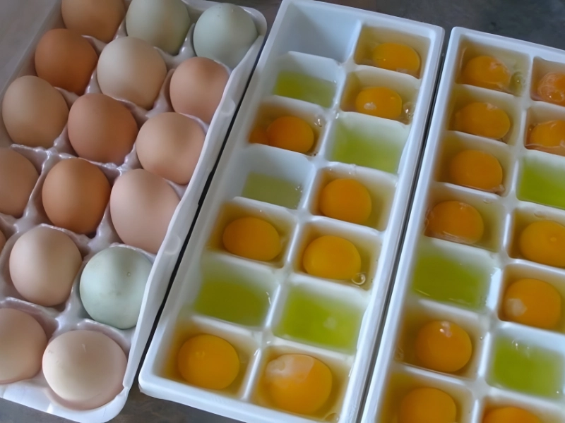 Laut The Pioneer Woman schmecken aufgetaute Eier mit einer Prise Salz genauso wie frische. Hartgekochte Eier sollten nicht eingefroren werden, rohe Eier ohne Schale hingegen schon. Die bequemste Methode ist, das rohe Ei in einer mit Frischhaltefolie abgedeckten Eiswürfelform einzufrieren.