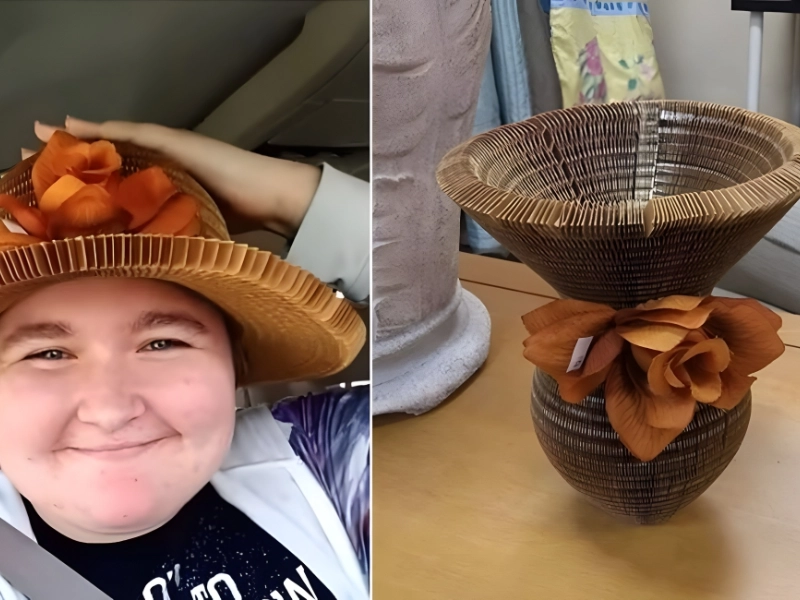 Vase Hat via Pinterest (@waracazara) Es scheint, dass die Mitarbeiter des Ladens nicht wussten, dass es sich bei dem Gegenstand tatsächlich um einen Hut handelte, bis ein Kunde erwähnte, man könne die Oberseite flachdrücken, um einen modischen Strohhut zu erhalten. Vase oder Hut? Es scheint, dass alles von der Perspektive abhängt.