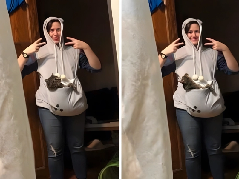 Pinterest, @boredpanda, und Cat Lady Sie machte ein Foto von ihrer Katze, die sich in der Kapuze zusammengerollt hatte und ein wenig verwirrt aussah. Mutige Katzenbesitzer, die ihre Katze zu einem ähnlichen Sitzen überreden möchten, müssen nicht traurig sein: Bei KITTYROO auf Amazon gibt es solche Katzen-Taschen-Kapuzenpullover für 32,99 $.