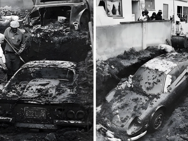 Zwei Männer in Kalifornien beginnen ihr verrücktes Abenteuer mit Grabungen in ihrem Garten. Sie legten einen seltenen Ferrari Dino GTS Baujahr 1974 nur wenige Zentimeter unter der Oberfläche frei. Die Tatsache, dass der Dino notdürftig mit Plane und Handtüchern abgedeckt war, deutete darauf hin, dass sein Vorbesitzer ihn irgendwann wieder ausgraben wollte.