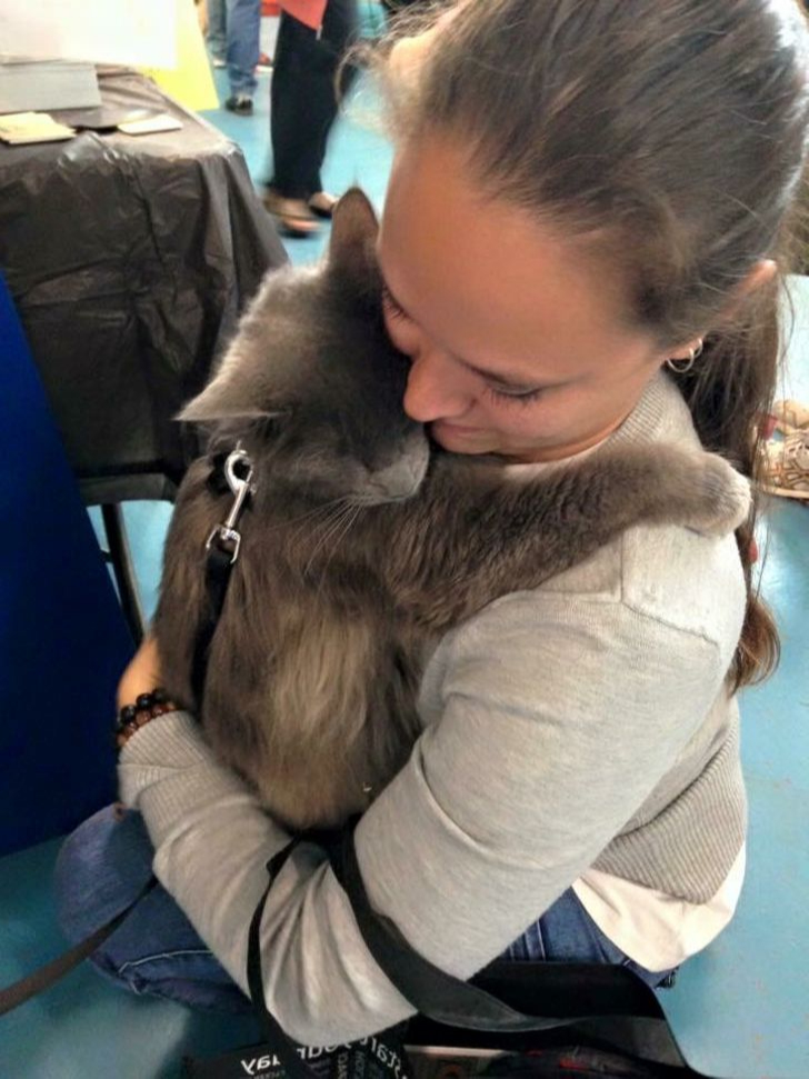 10. Despite being blind, my cat enjoys climbing people to give them hugs.
