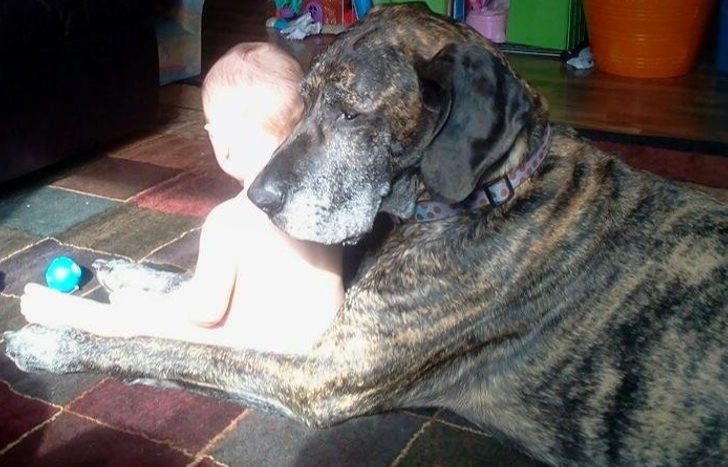 This striking image debunks myths about large dogs, showcasing their tender and loving side. It reminds us that size doesn’t define a pet’s capacity for love and loyalty. Often, the biggest dogs carry the most enormous hearts, brimming with affection and companionship.