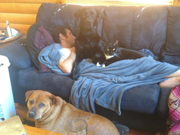 When a companion is under the weather, animals show a remarkable sense of empathy and care. This photo beautifully portrays the compassion pets extend to one another. It’s a touching reminder of the emotional depth and kindness that animals hold within.