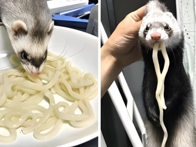 Have you ever come upon an animal this much like a noodle before? No, we didn't think of. Ferrets are as noodle-y as you can get with their long bodies and thin limbs; which is why this humorous picture is even more comical. After all, you hardly often find a noodle devouring another noodle. We assume, nevertheless, that you are what you consume since they do say that.
