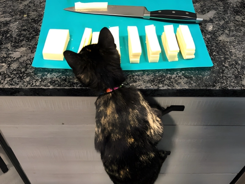 Does anyone else believe that cats go underappreciated often? Many people believe that cats are merely ordinary pets, yet these guys are sly and, when needed, they are rather smart. Look at this gal just now! She could smell the cheese, but she could also tell it was a bit too high for her to leap from. She then reasoned that the ideal ladder would come from the drawer knobs using her intellect!