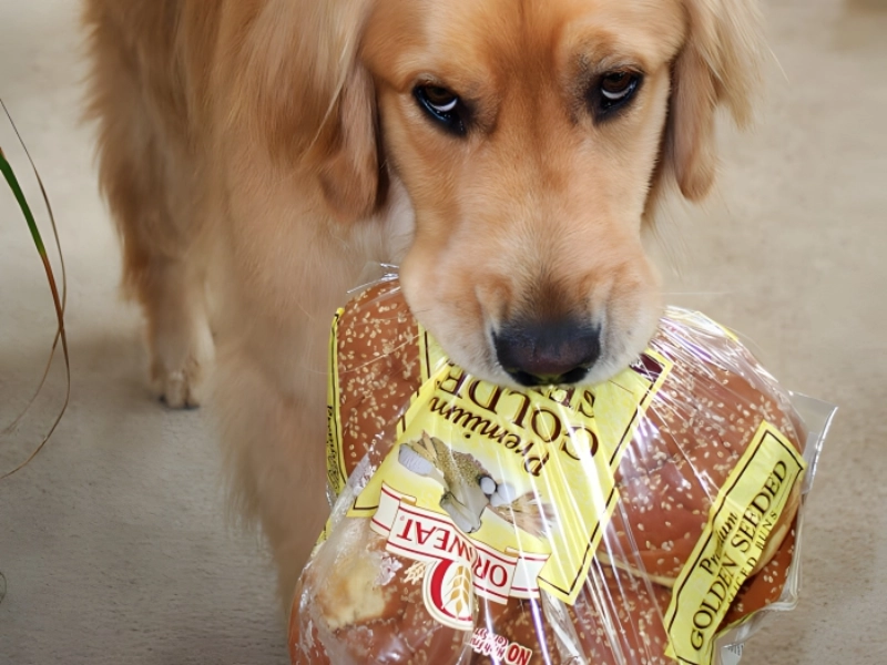 Though that begging face seems to imply he wants part of the golden-seeded bread for himself, we have a sense his dog mother most likely replaced it with some kibble instead. At least he made an effort, though.