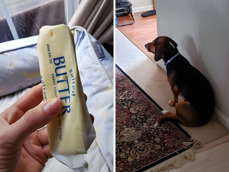 Dogs do like to live their own life even if they love their owners more than anything. And this dog that loves butter chose to start implementing a scheme she had been developing for weeks. She crept into the kitchen in the dead of night, snatched a stick of butter, and tucked it under her bed! And, without her annoying dog mom, she would have also gotten away with it.