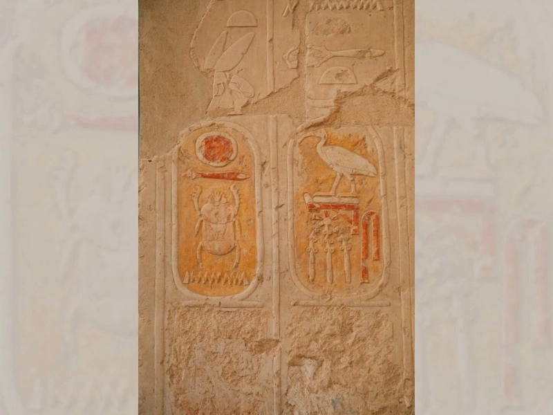 Young identifia également les noms de Ptolémée et de Cléopâtre dans le texte hiéroglyphique. En comparant le texte grec avec les hiéroglyphes, il devina que les cartouches – ces ovales entourant certains groupes de signes – contenaient des noms royaux. Ce fut une avancée majeure, car elle offrit certaines des premières correspondances claires entre des hiéroglyphes spécifiques et leurs significations.