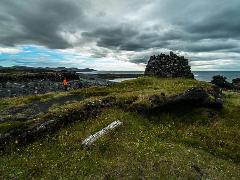 Avec les vestiges d'une station de pêche historique remontant au Moyen Âge, Selatangar offre une fenêtre fascinante sur le passé maritime de l'Islande. Occupé à l'origine pendant les saisons de pêche, le site est constitué de constructions en pierre et en tourbe. En parcourant ces ruines évocatrices, les visiteurs peuvent imaginer la vie rude des pêcheurs qui y vivaient. Le site offre des vues imprenables sur la côte rocheuse et l'océan Atlantique Nord. Des panneaux d'interprétation expliquent les techniques de pêche ancestrales et fournissent un contexte historique. La vie aviaire y est également abondante, surtout en été lorsque diverses espèces d'oiseaux marins nichent sur les falaises environnantes. Alliant beauté naturelle et valeur historique, cet endroit captive autant les passionnés d'histoire que les amoureux de la nature.