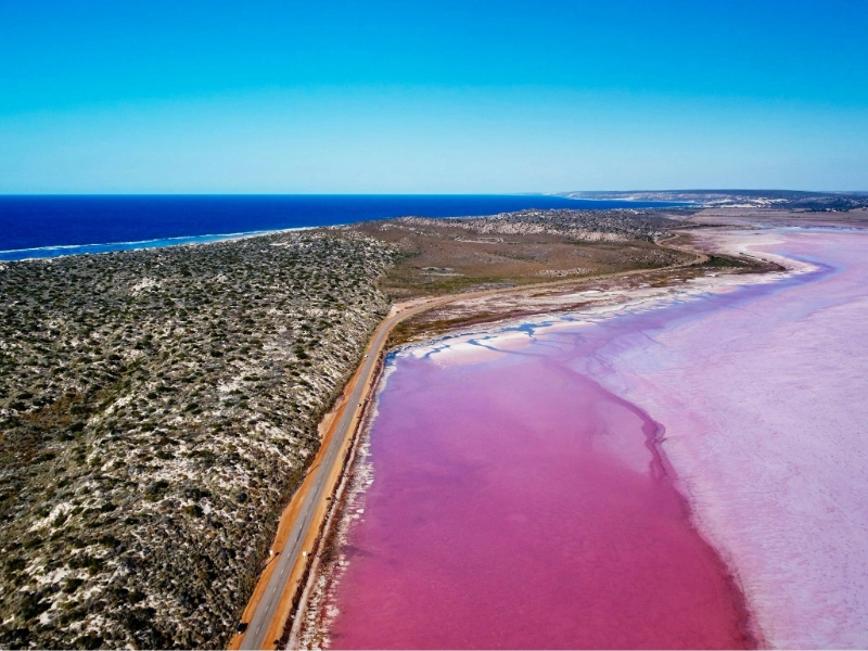 Hutt Lagoon est le lac rose le plus insolite au monde en raison de sa capacité remarquable à changer de couleur au cours de la journée, passant du rose vif au lilas et même à des teintes pourpre profond. Ce phénomène de changement de couleur étonnant est causé par la présence d'une algue spécifique productrice de caroténoïdes, Dunaliella salina, associée à des facteurs géologiques inhabituels influençant la réflexion et l'absorption de la lumière. Ce lagon est le seul lac rose au monde à présenter des transitions de couleur aussi frappantes ; son fond est constitué d'une croûte de gypse unique qui accentue ces fluctuations chromatiques. S'étendant sur près de 14 kilomètres le long de la côte corallienne d'Australie-Occidentale, le lac est le plus grand site de production naturelle de bêta-carotène au monde. Les scientifiques ont découvert que les qualités changeantes de couleur du lac résultent de sa composition géologique particulière, qui inclut des dépôts minéraux rares et un système hydrologique souterrain spécial.
