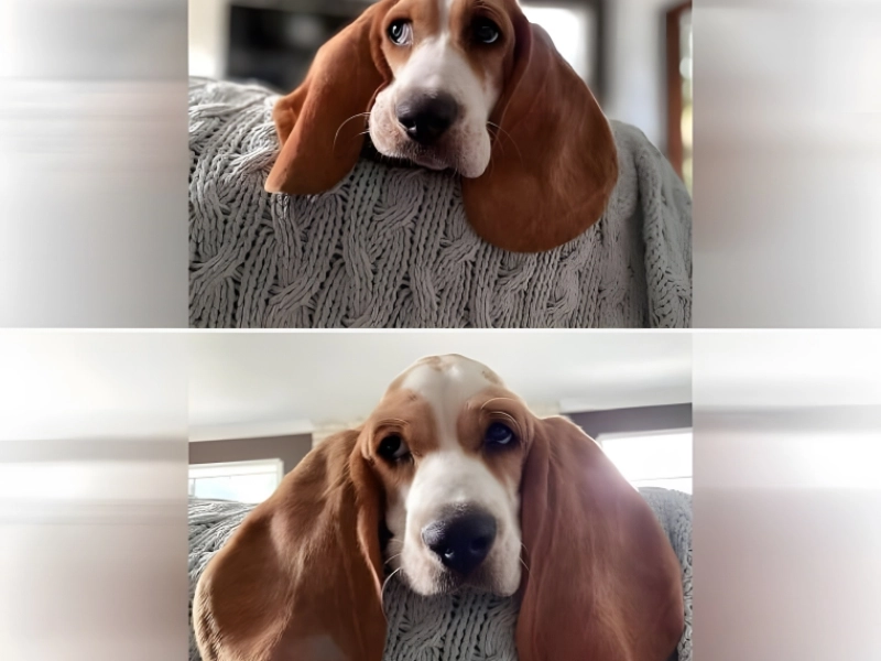 Regard de côté et oreilles tombantes