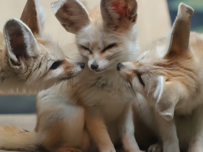 Bien que des fennecs soient déjà apparus sur cette liste, avez-vous déjà vu trois magnifiques fennecs réunis pour discuter des derniers potins ? Non, nous non plus. Leurs oreilles sont si grandes qu'on devine qu'ils ne peuvent pas se rapprocher davantage. Si c'était le cas, leurs oreilles s'emmêleraient probablement et ils ne pourraient plus les séparer !