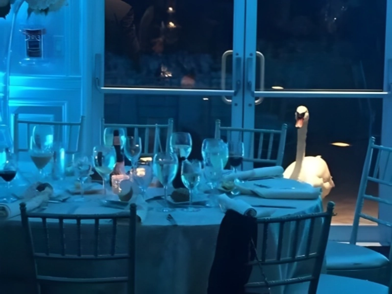L'obsession évidente du cygne pour les plats à l'intérieur, démontrant une conscience étonnante des plaisirs gastronomiques habituellement présentés lors des réceptions de mariage, a rendu la situation très amusante. Son attitude délibérée et sa concentration implacable suggéraient un intrus sophistiqué qui savait exactement ce qu'il manquait. La scène a brillamment capturé la jonction humoristique entre les célébrations humaines et la faune, nous rappelant que peut-être les moments les plus mémorables d'un mariage sont ceux qui n'auraient pu être programmés. La visite spontanée du cygne a offert aux invités à la fois du divertissement et un rappel que, invité ou non, la nature a souvent sa propre façon de participer à nos événements particuliers.