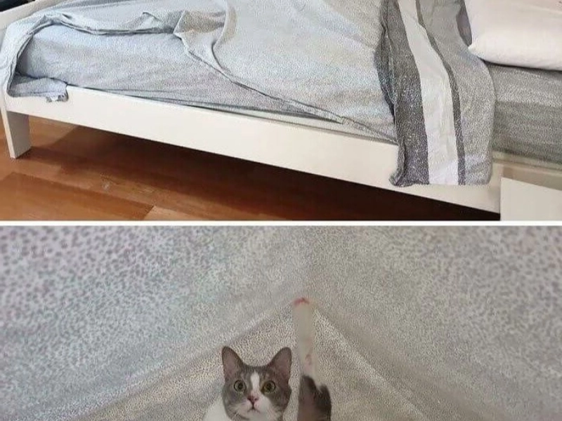 Votre première impression face à cette image est probablement erronée, et vous serez sans doute surpris en découvrant ce qui se cache réellement sous ces draps. Même si ce n'est pas ce à quoi vous vous attendiez, le spectacle reste étrange. Ce chat semble d'ailleurs un peu interloqué qu'on vienne le déranger alors qu'il souhaitait simplement passer un moment seul sous la couette.