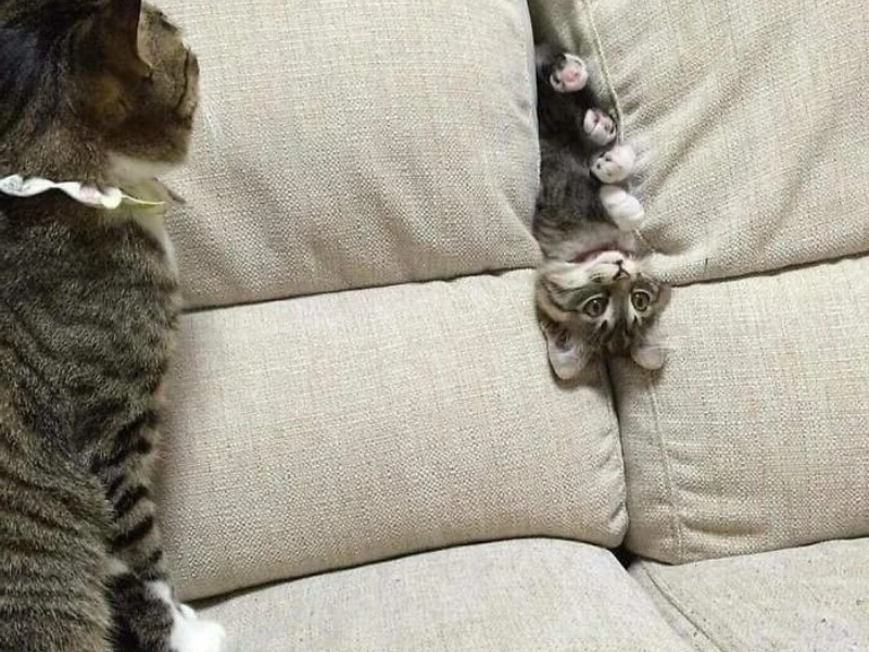 Sans parti pris. Chacun trouve le confort à sa manière, et ce chat semble avoir une méthode particulièrement spéciale. Au lieu de se pelotonner sur le canapé ou de se percher dessus, il a choisi de se blottir entre les coussins du sofa. Non seulement il y a fait une sieste, mais il l'a fait à l'envers, en se prélassant dans cette position improbable.