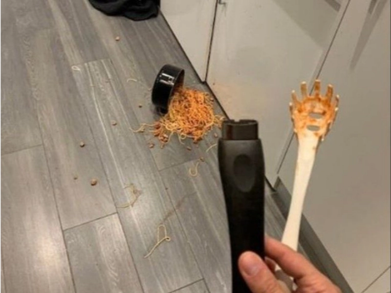 Transférer les spaghettis dans l'assiette s'est révélé être une entreprise des plus périlleuses.