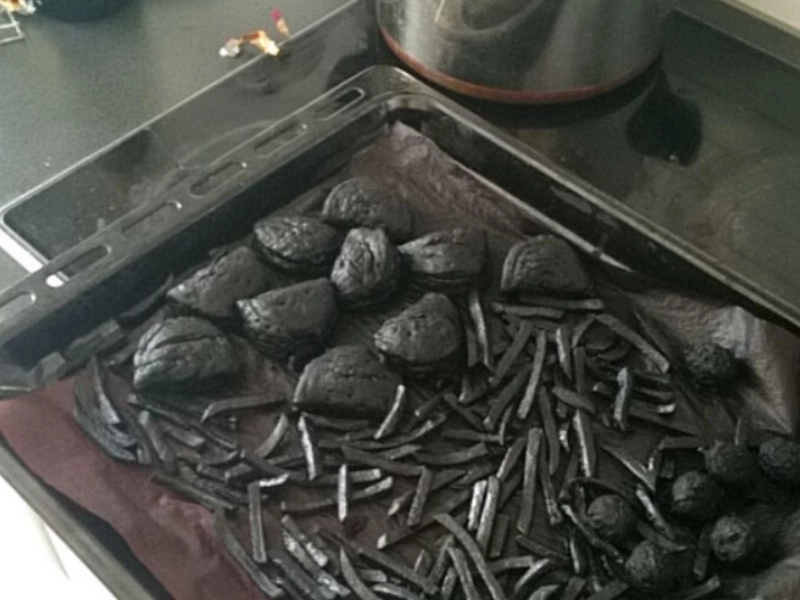On devine encore le plat à sa silhouette, avant qu'il ne soit complètement calciné.