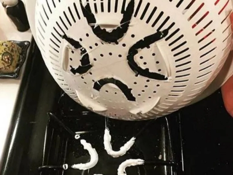 Le cuisinier inexpérimenté ignorait que le plastique avait la fâcheuse tendance à fondre.