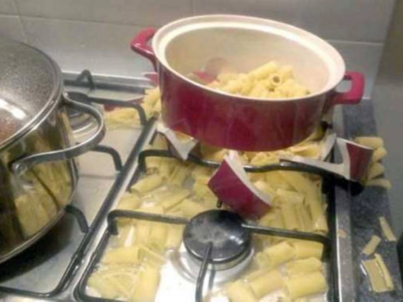 La casserole n'a malheureusement pas supporté le poids de la préparation.