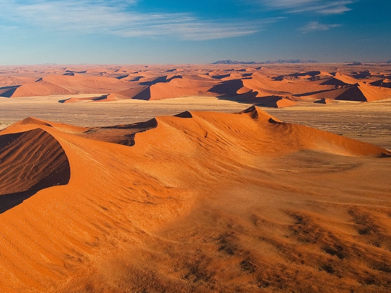 Disséminés à travers le désert du Namib, les énigmatiques Cercles de Fées créent un motif hypnotique en pois. Ces taches circulaires parfaitement nues, entourées d'anneaux d'herbe dense, s'étendent sur des centaines de kilomètres avec des diamètres variant de deux à quinze mètres. Leur origine fait l'objet de débats scientifiques de longue date, allant de l'activité des termites à la compétition entre plantes pour les ressources en eau. Les cercles semblent s'auto-organiser et conserver leur forme et leur échelle sur des décennies. Des études récentes suggèrent qu'une combinaison de facteurs, incluant la chimie du sol, le comportement des termites et la compétition végétale, pourrait expliquer leur apparition. Leur régularité et la précision mathématique de leur espacement en font l'un des aspects les plus fascinants du désert.