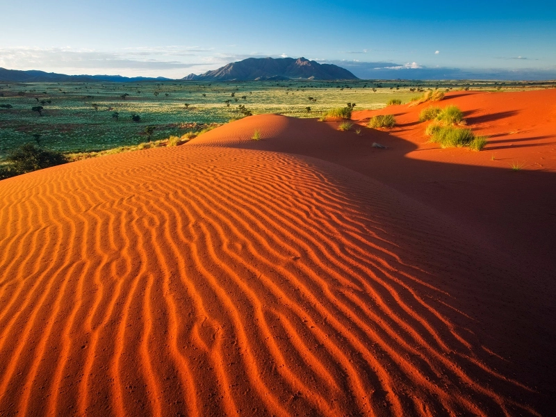 S'élevant abruptement du sol désertique, le massif du Brandberg, culminant à 2 573 mètres, est la plus haute montagne de Namibie. Formé il y a plus de 120 millions d'années, cette intrusion granitique ancienne revêt une grande importance géologique et culturelle. Son nom, qui signifie "Montagne de Feu" en afrikaans, vient de la lueur orange-rouge vive que projette le soleil couchant sur sa face ouest. Le massif abrite l'une des plus grandes galeries d'art rupestre à ciel ouvert au monde, avec plus de 45 000 peintures préhistoriques, dont la célèbre pictographie de la "Dame Blanche". L'environnement particulier autour de la montagne offre un habitat à des animaux du désert et abrite des espèces végétales endémiques.