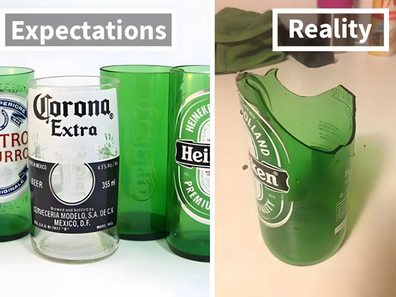 Quelqu'un est tombé sur une méthode DIY qui transformait des bouteilles de bière en verres allant au lave-vaisselle. Très probablement, des outils électriques coûteux ont été utilisés pour couper et poncer le verre avec précision. Comme l'a découvert le candidat imitate