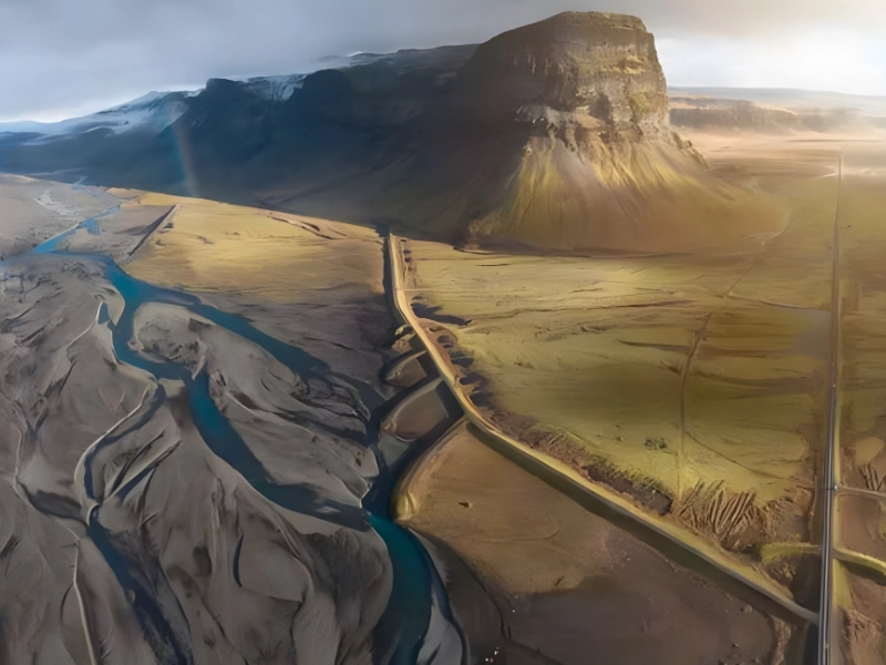 Une simple séquence de drone ne suffit pas à capturer les paysages à couper le souffle des montagnes couvertes de nuages et des rivières tumultueuses, semblables à des veines, qui parcourent l'Islande. C'est pourquoi cette image, créée en assemblant 12 clichés, offre une représentation plus fidèle et en temps réel du paysage.