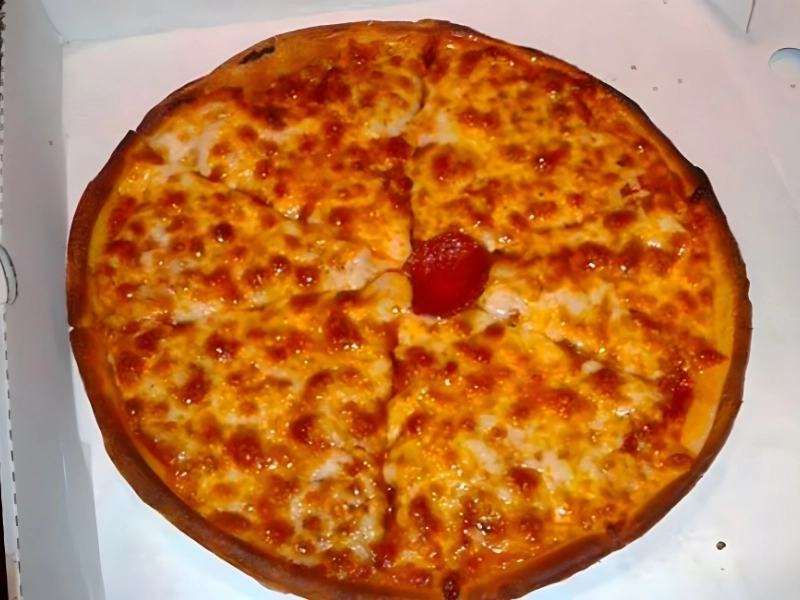 Ou, comme le client en question, une pizza au pepperoni. Au lieu de recevoir la pizza au pepperoni commandée, il a reçu une pizza au fromage avec un seul pepperoni presque exactement au centre. Tout, y compris le pepperoni solitaire et son placement excentré, semble vraiment passif-agressif. Heureusement, la pizza au fromage reste une alternative savoureuse.