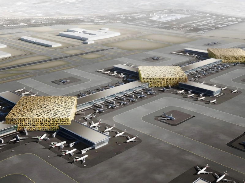 Une fois son développement finalisé, il aura la capacité d'accueillir 260 millions de passagers par an, soit dix fois plus que l'aéroport international de Dubaï. Pièce maîtresse du projet Dubai World Central, l'aéroport d'Al Maktoum occupera une superficie stupéfiante de 285 kilomètres carrés et, à l'image de son homonyme, le cheikh Maktoum bin Rashid Al Maktoum, il marquera durablement le paysage de Dubaï.