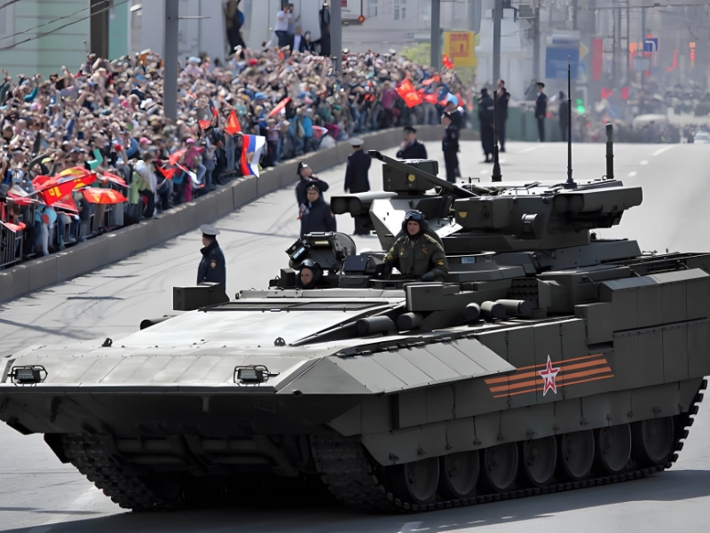 初登場:T-15は2015年にモスクワ戦勝記念日パレードのリハーサル中に初めて発見されましたが、当時その砲塔は覆われており、その開発と差し迫った配備を示していました。