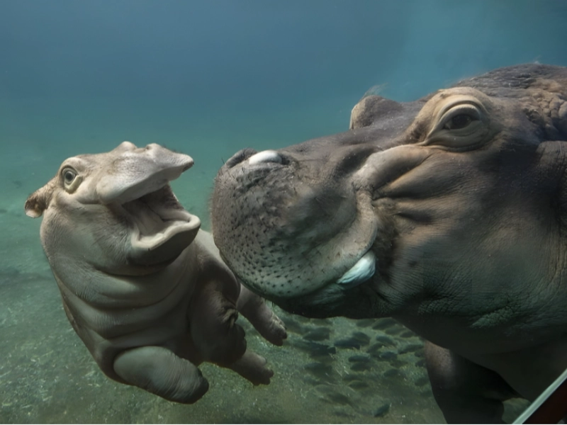 カバの母と子の間の絆には、否定しがたく心動かされるものがあります。この心温まる写真では、愛情と安全のジェスチャーとして巨大な体を密着させ、優しい団欒の瞬間にある2頭が捉えられています。母の保護的な存在と子の信頼は、家族愛の感動的な肖像を作り出します。その大きさと強さにもかかわらず、カバは深く社会的な動物であり、彼らの関係は触れ合い、コミュニケーション、そしてケアに基づいて構築されています。この画像は、私たちに外見を超えて見るよう招き、最も恐ろしい生き物でさえ存在する優しさを理解するよう促します。