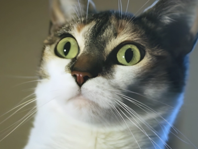 この猫の顔にある本物の驚きの表情は忘れられません。何がそれを驚かせたにせよ、それは本当に予期せぬものであったに違いありません。目は大きく見開かれ、口は少し開かれています。猫はその好奇心と素早い反応で知られており、この画像はその精神を完璧に捉えています。この写真は、瞬間の背後にある物語——猫は何を見たり聞いたりしたのか?——を想像するよう私たちを招きます。それは、動物が単に自身であることによって起こり得る自発的な魔法と、それらの儚い表情を捉える写真家の技術の証です。