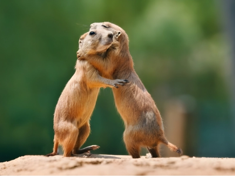 グラウンドホッグ(ウッドチャック)はその遊び心と社交的な性質で知られており、この心温まるシーンは2匹が優しい抱擁を分かち合う様子を捉えています。彼らのハグは単なる可愛いジェスチャー以上——それは動物界におけるつながりと安心感の重要性を強く思い起こさせます。人間のように、グラウンドホッグはストレスを軽減し社会的絆を強化するために身体的近さを求めます。時間が止まったこの瞬間は、愛情とサポートへの普遍的な欲求を物語っています。それは愛と安心の言葉が種を超えて存在し、時には単純なハグが人生の課題に直面する上で全ての違いを生み出すことができることを思い出させます。